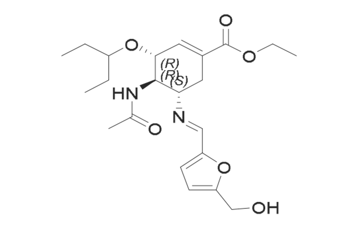 (3R,4R,5S)-ethyl -4-acetamido-5-(((E)-(5- (hydroxy methyl)furan 2yl)methylene)amino)- 3-(pentan-3- yloxy)cyclohex-1-ene- 1-carboxylate